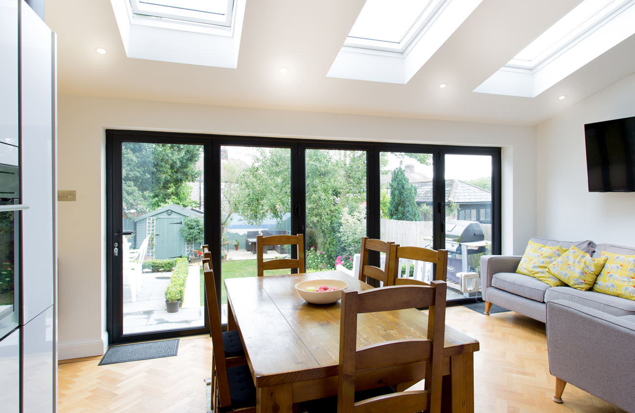 Claire and Jerome loved their house but wished for a large kitchen dinner/lounge so all the family could be in one room without feeling on top of one another. The builders created this longed for space by extending to the rear of the house, removing the main wall at the back of their home. The builders made the whole area light and airy by installing large bi-folding doors opening up on to a raised patio and incorporated a vaulted ceiling with large Velux roof windows further adding to the feeling of light and space. The whole area was complemented with the installation of parquet flooring and a high-end modern kitchen. Leicestershire Building Network are still in contact with Claire and Jerome, who assure us they are still very much in love with their new home.